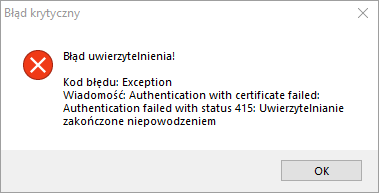 415 – Unsupported Media Type – Błąd typu „certyfikat lub format danych nieobsługiwany”; występuje np. przy niepoprawnym certyfikacie lub złym formacie żądania.