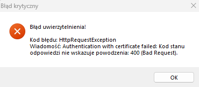 Przyczyną problemu jest nieprawidłowa interpretacja numeru NIP przez certyfikat uwierzytelniający w przypadku, gdy zawiera on znaki specjalne.
