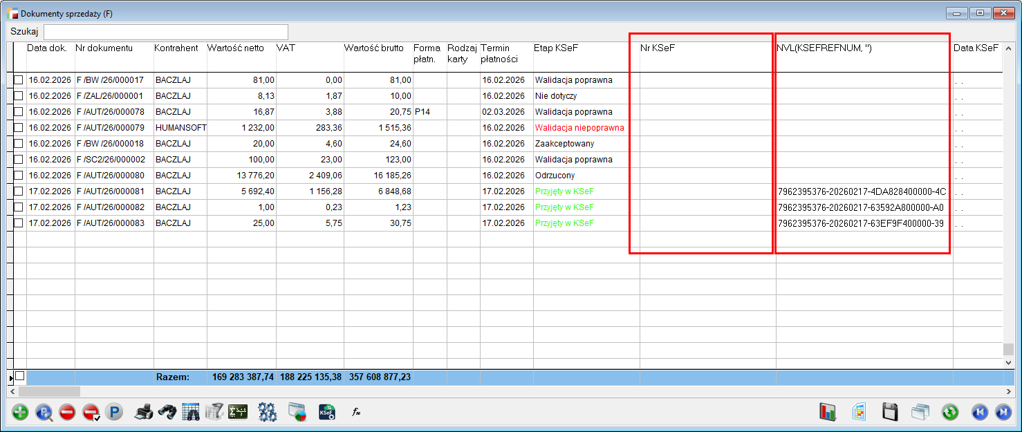 W środowisku testowym oraz przedprodukcyjnym numery KSeF nie są wyświetlane.