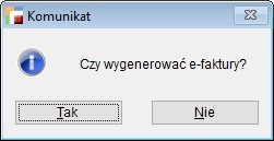 Pojawi się wówczas komunikat Czy wygenerować e-Faktury?
