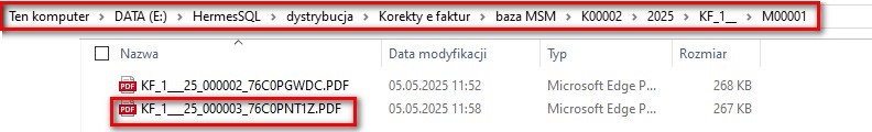 Wygenerowane korekty e-faktur zostają zapisane we wskazanym przez nas katalogu