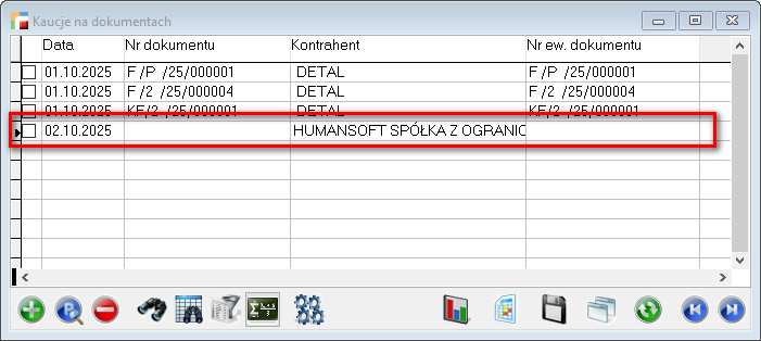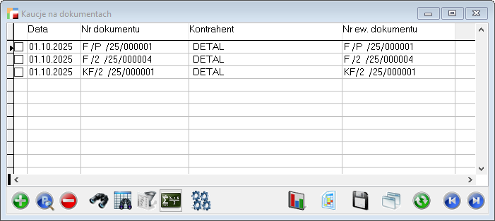 Dokument kaucyjny nie ma numeru, o ile nie powstał z dokumentu sprzedaży lub korekty. Posiada tylko datę i kontrahenta.