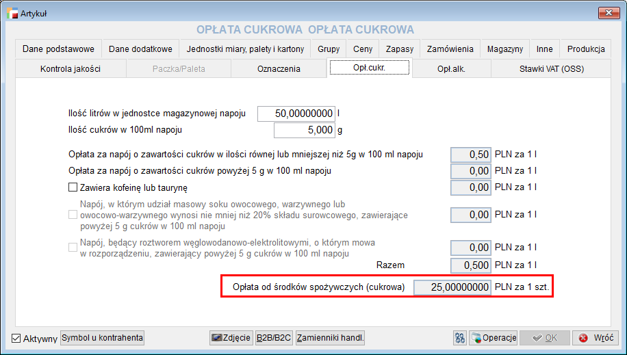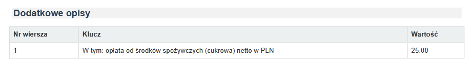 - Uwzględnij opłatę cukrową jako dodatkowe opisy