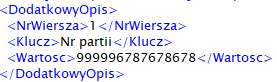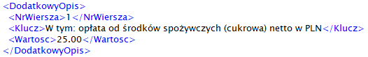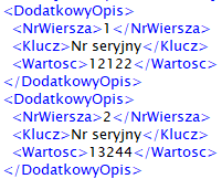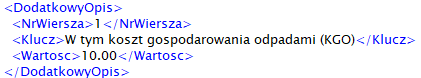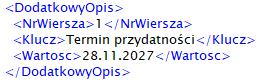 Fragment XMLa zawierający tag <DodatkowyOpis>