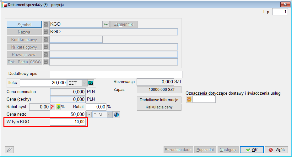 - Uwzględnij KGO jako dodatkowe opisy pozycji