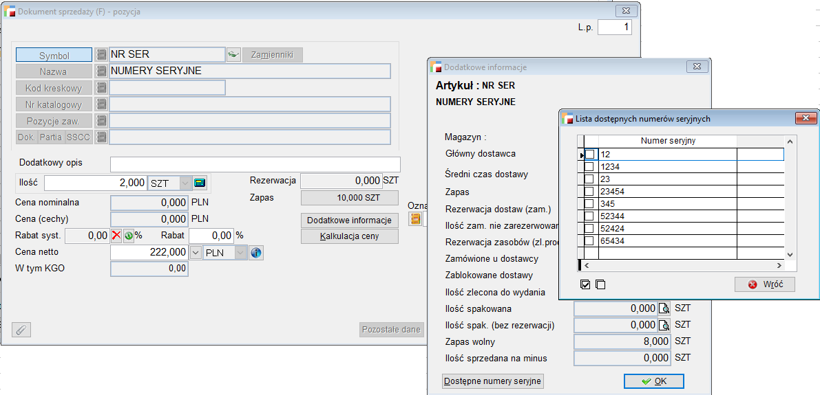 - Uwzględnij numery seryjne jako dodatkowe opisy pozycji