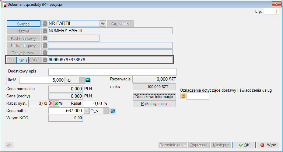 - Uwzględnij numery partii jako dodatkowe opisy pozycji