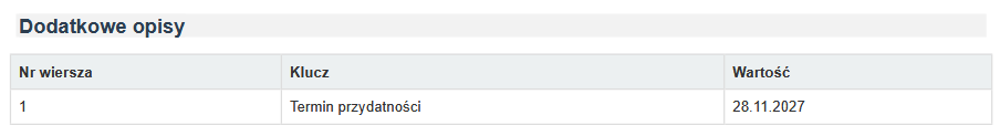 Fragment dokumentu w PDF zawierające informacje w sekcji Dodatkowe opisy