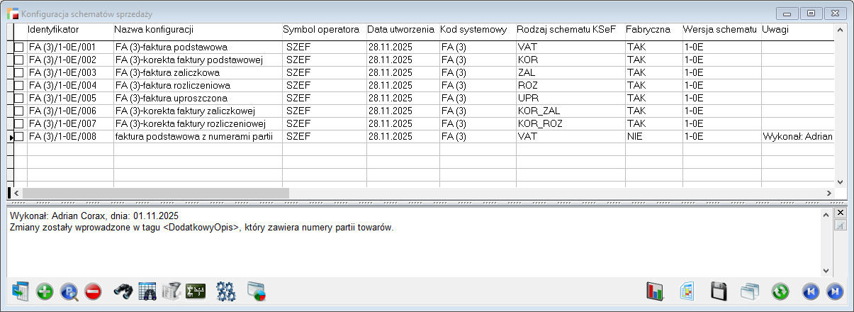 Po wybraniu tej opcji otwiera się okno Konfiguracja schematów sprzedaży, w którym prezentowane są: