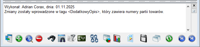 Po kliknięciu przycisku Definicja dodatkowych opisów pozycji otwiera się okno zawierające listę formuł opisu dodatkowego dla pozycji.