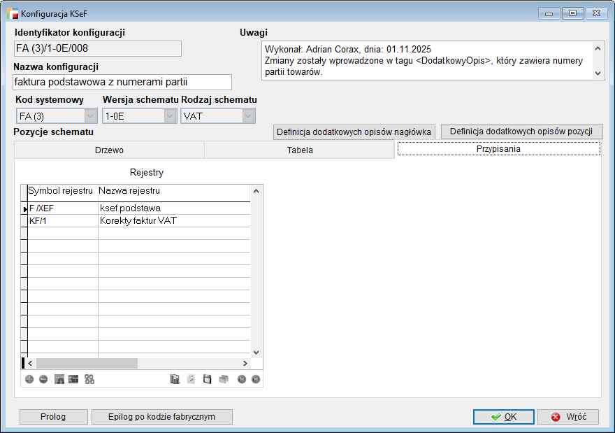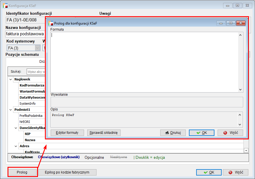 Prolog to program wykonywany w języku XBase, uruchamiany przed rozpoczęciem generowania pliku XML w schemacie KSeF.