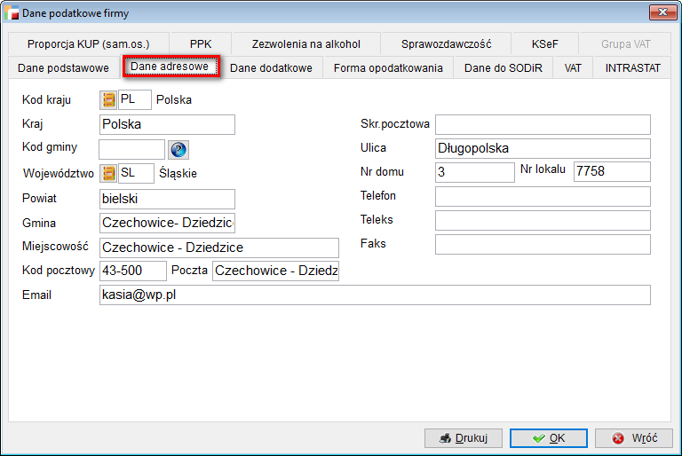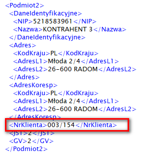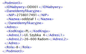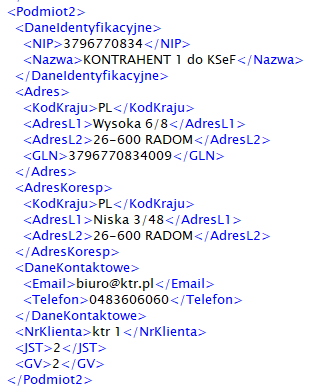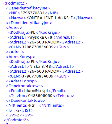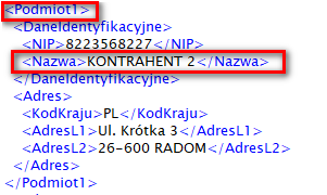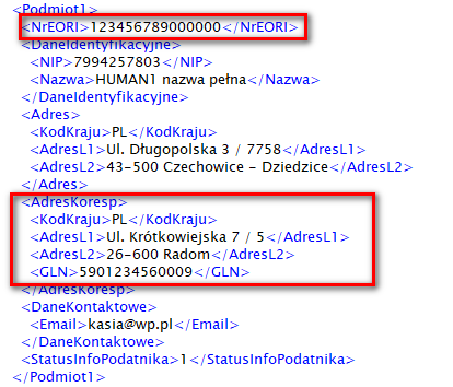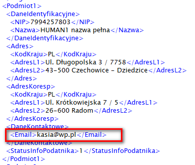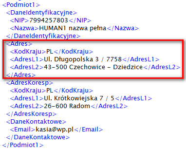 Zawarte w zakładce Dane adresowe będą widniały w pliku xml w sekcji dotyczącej AdresL1.