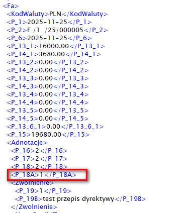 W przypadku braku zwolnienia, system doda w piku xml tag P_19N z wartością 1.