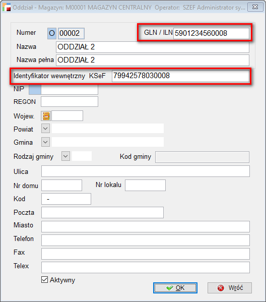 Na potrzeby mapowania danych na fakturach zakupu, które zostaną udostępnione w kolejnej wersji, do Magazynów i Oddziałów dodano numery GLN/ ILN oraz Identyfikator wewnętrzny KSeF.