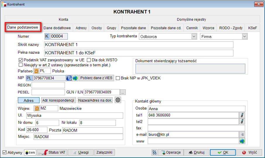 - Upewnić się, że wszystkie dane adresowe są uzupełnione.