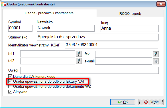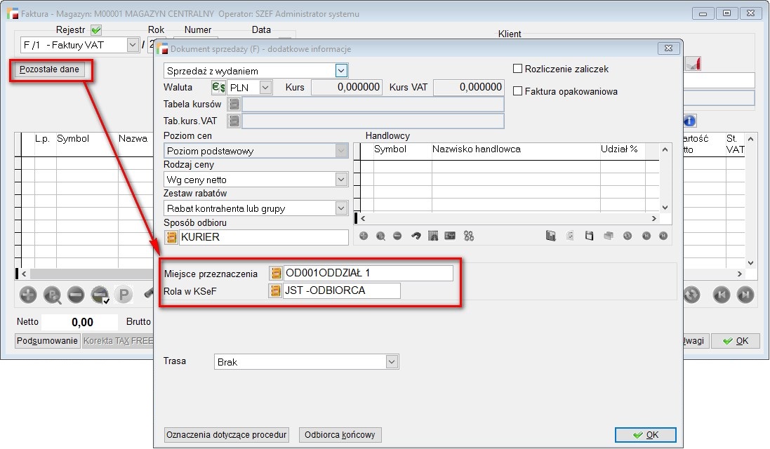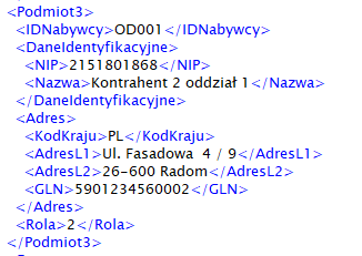 2 – Odbiorca – w przypadku, gdy na fakturze występują dane jednostek wewnętrznych, oddziałów, wyodrębnionych w ramach nabywcy, które same nie stanowią nabywcy w rozumieniu ustawy,