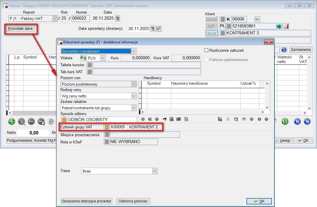 W takiej sytuacji firma będąca sprzedawcą, wystawcą faktur, trafia do dokumentu jako Podmiot 3, z oznaczeniem GV i rolą 9 oznaczoną jako Członek GV – wystawca.