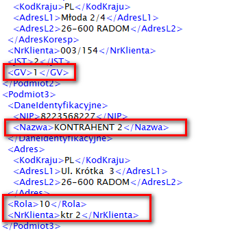 - Brak uzupełnionego adresu w danych kontrahenta dla Podmiotu 2 lub 3.