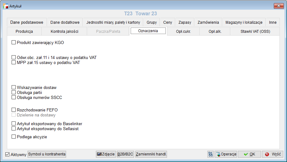 Możliwe jest zaznaczenie jednego znacznika, do którego należy wprowadzić pole opisowe. Wówczas takie informacje będą wykazywane odpowiednio w tagach: