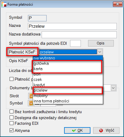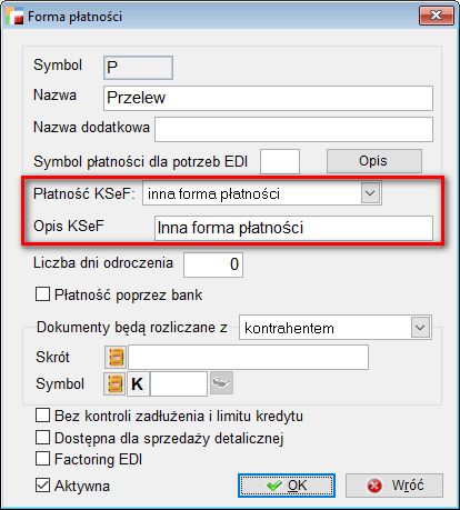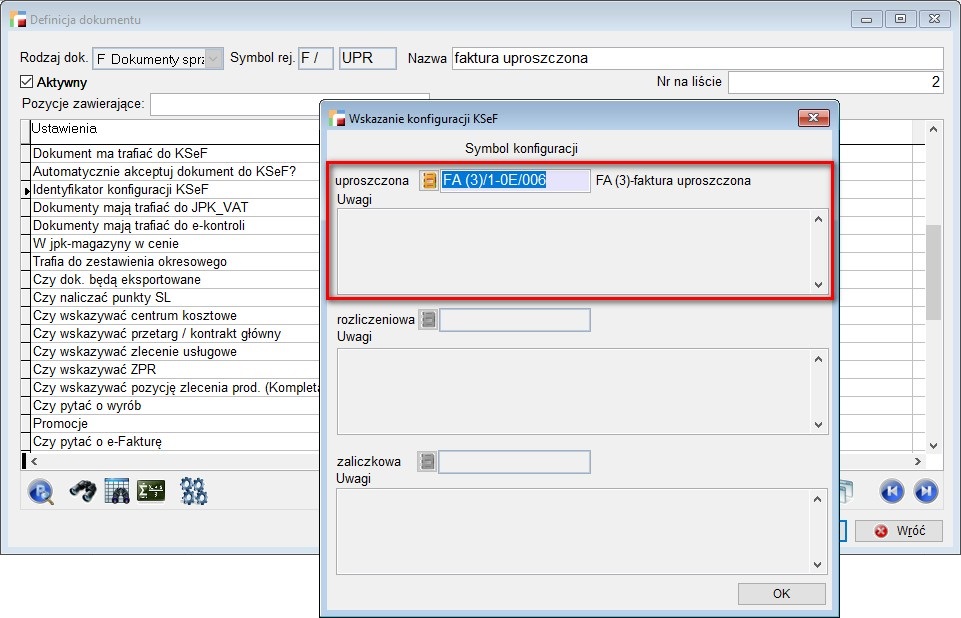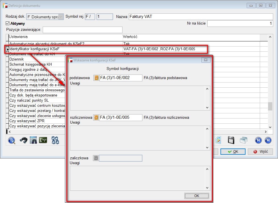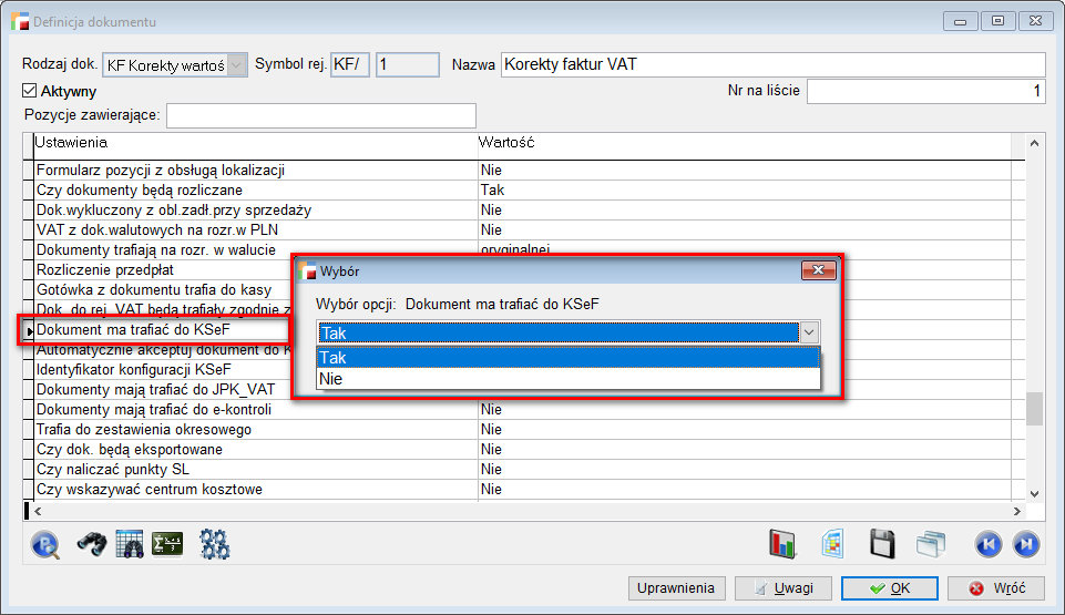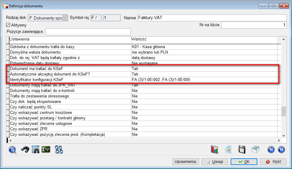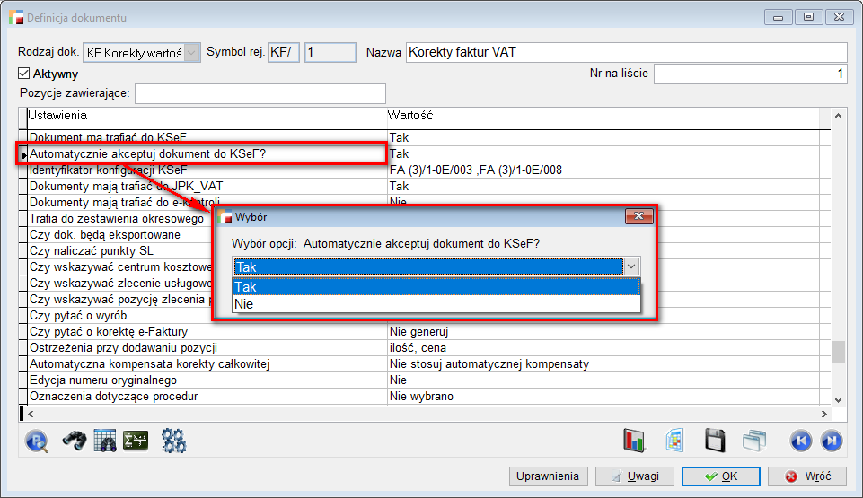- Ustawić opcję Dokument ma trafiać do KSeF na wartość TAK.