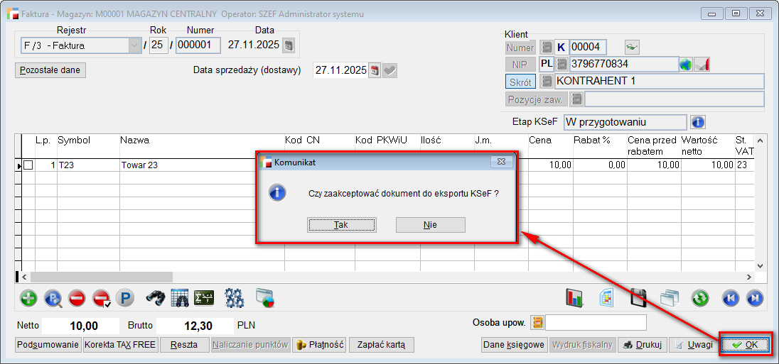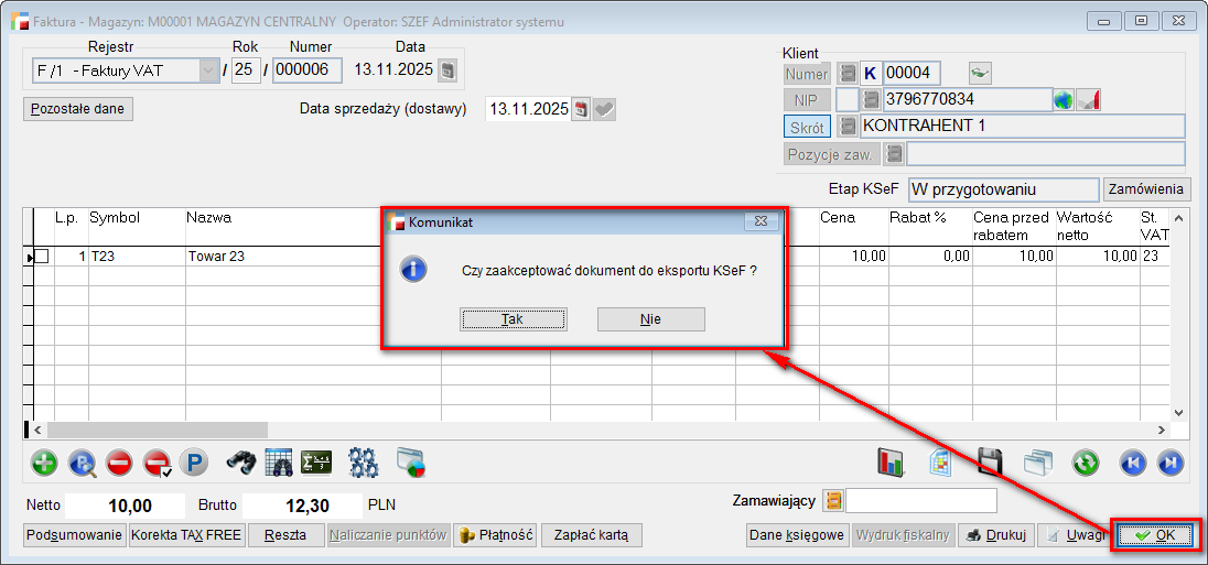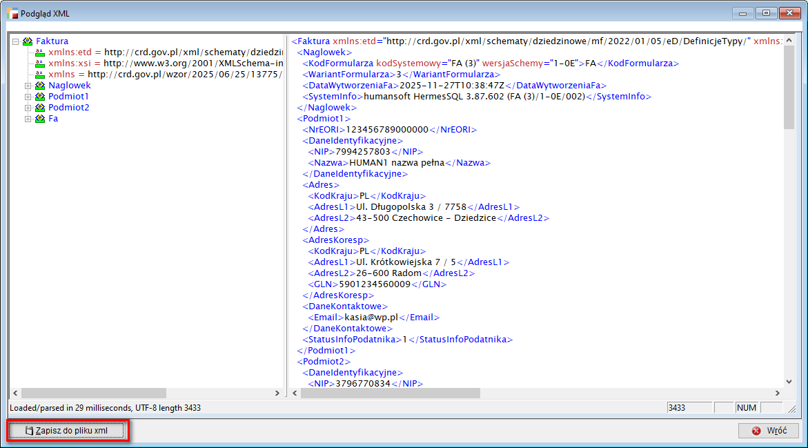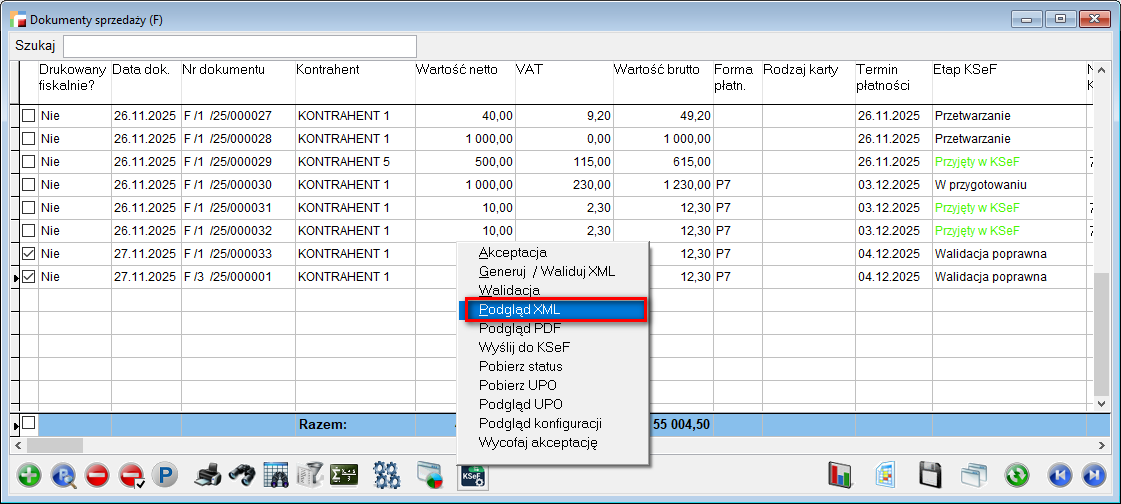 - Ponownie zaakceptować dokument i wygenerować XML.