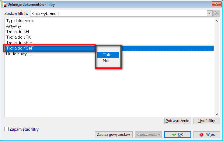 Jeżeli dokumenty z tego rejestru mają być przekazywane do KSeF, należy:
