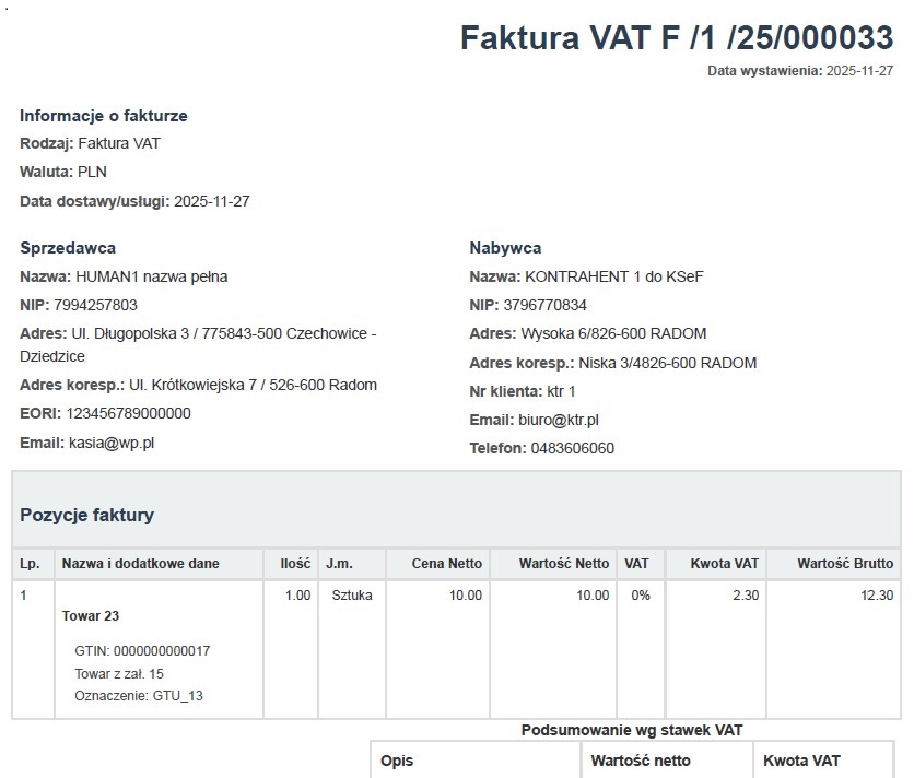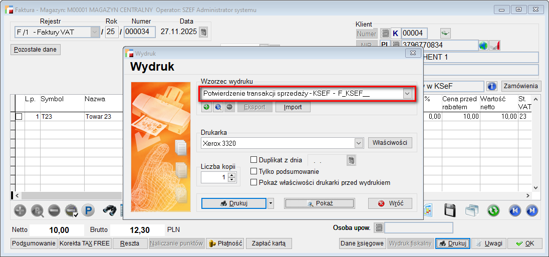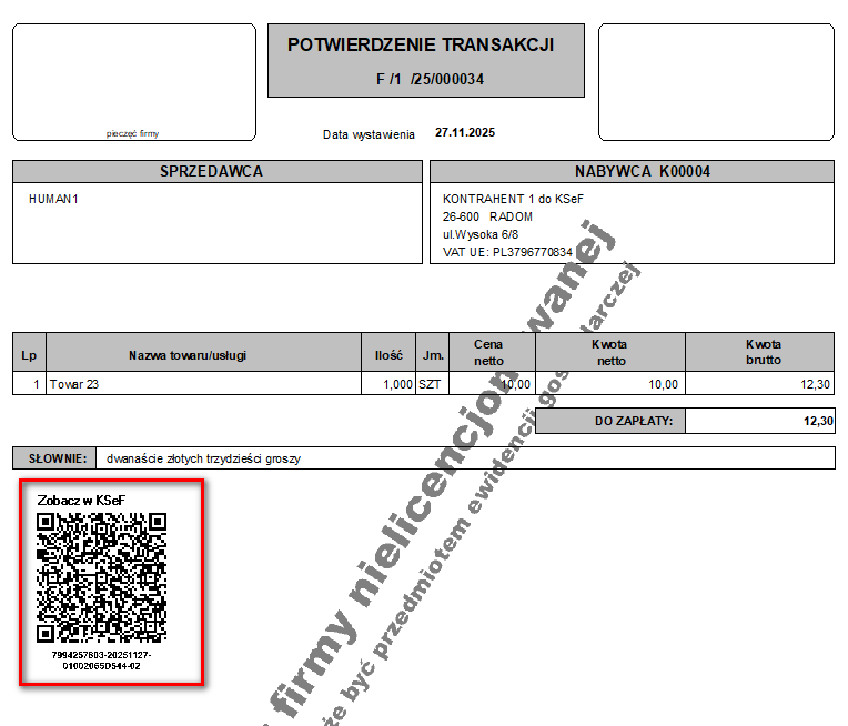 Na potrzeby mechanizmu KSeF do wydruków dokumentów sprzedaży dodano wzorzec Potwierdzenie transakcji sprzedaży – KSEF – F_KSEF__.
