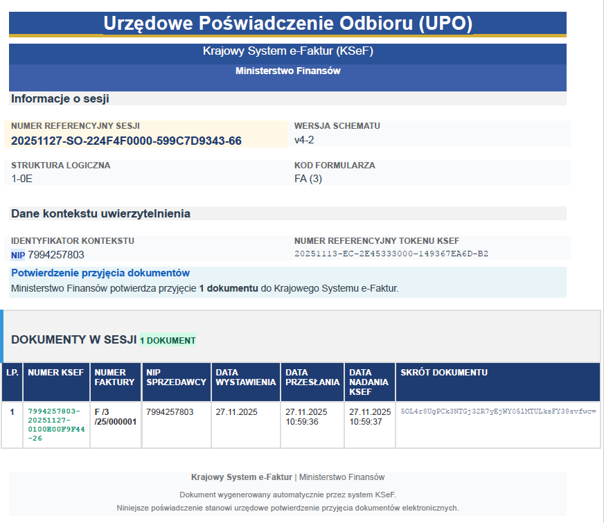 Nie należy ponownie wysyłać dokumentu, który został już przyjęty przez KSeF.