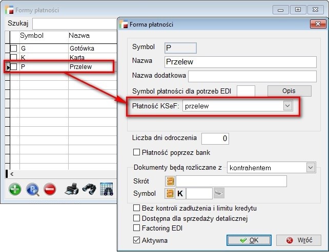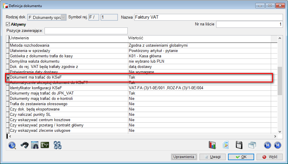 W definicjach dokumentów sprzedaży (faktur, korekt) dostępne są trzy kluczowe parametry konfiguracyjne dedykowane KSeF: