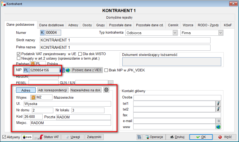 Dane identyfikacyjne zawarte w dokumencie są fikcyjne i zostały wygenerowane na potrzeby niniejszej instrukcji.