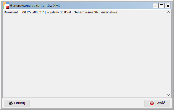 | Brak możliwości ponownego generowania pliku XML po wysyłce. | Dokument został już wysłany do KSeF i zarejestrowany. System blokuje jego modyfikację. | W przypadku konieczności wprowadzenia zmian należy wystawić fakturę korygującą. Oryginalny dokument nie podlega edycji. |