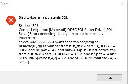 Usunięto komunikat błędu Error converting data type varchar to numeric, pojawiający się podczas próby uruchomienia deklaracji CIT-2.