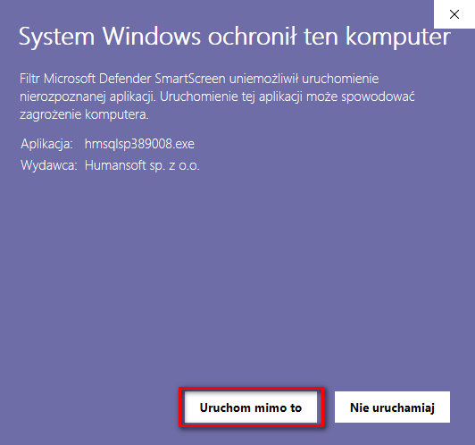 Więcej informacji → Uruchom mimo to.