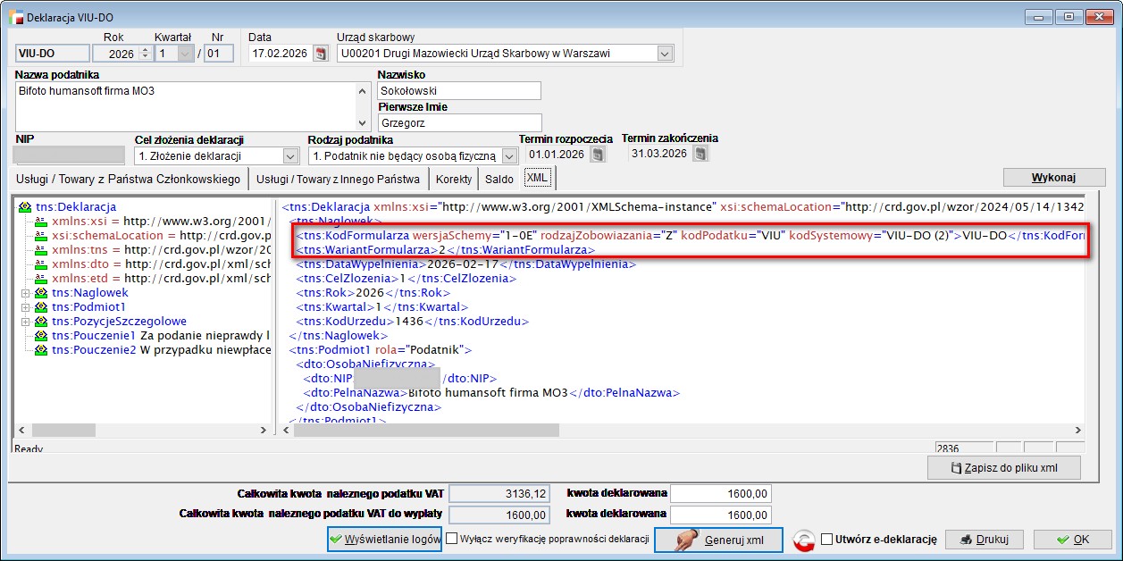 Zaktualizowano formularz i wydruk deklaracji VIU-DO – Deklaracja dla rozliczania podatku VAT w zakresie procedury unijnej do wersji 2.