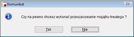 Wówczas, wyświetlone zostanie pytanie: Czy na pewno chcesz wykonać przeszacowanie majątku trwałego?