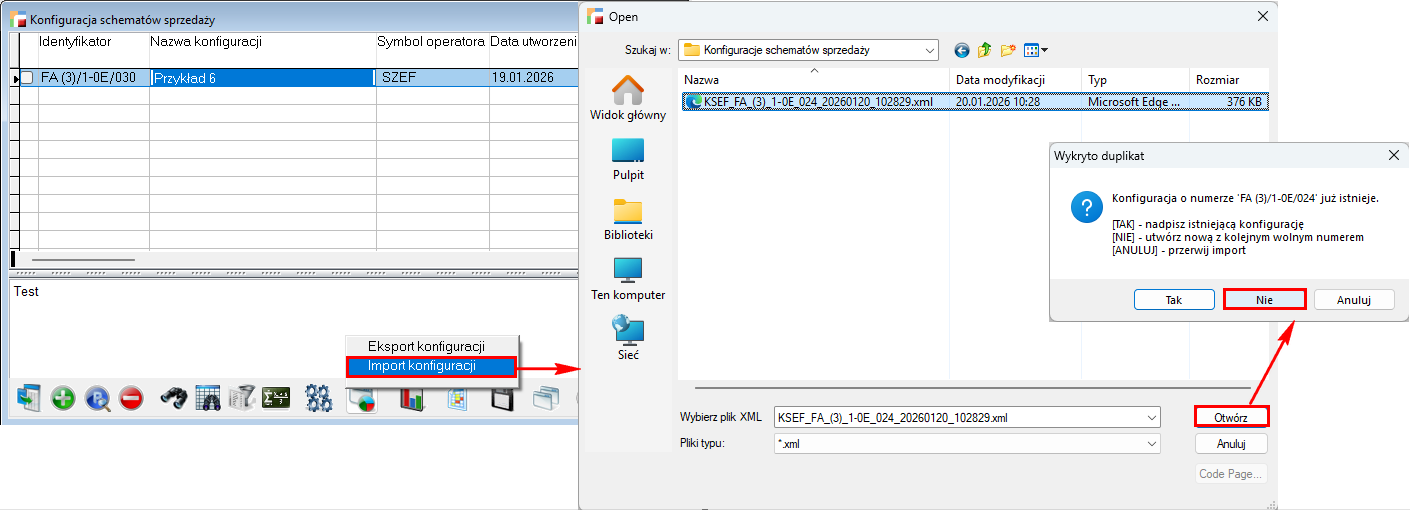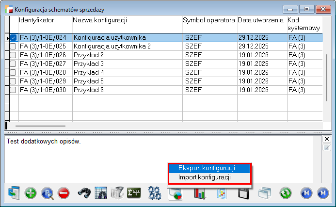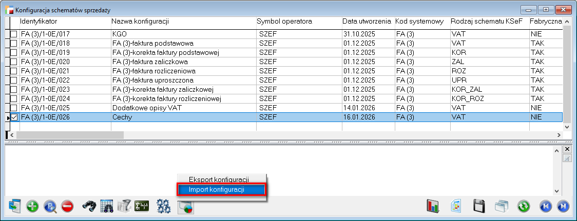 W przypadku przypisania do firmy modułu Konfiguracji schematów sprzedaży, w oknie Konfiguracji schematów sprzedaży dostępna będzie opcja Import konfiguracji.