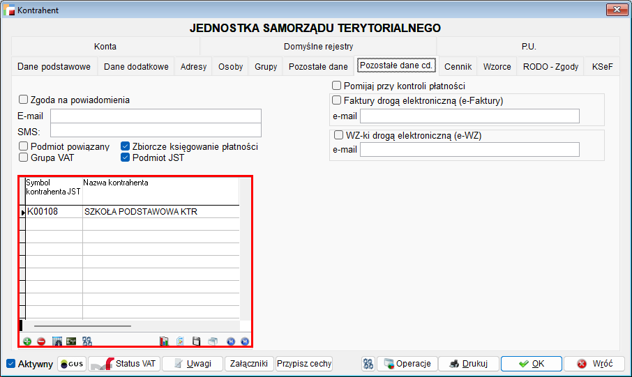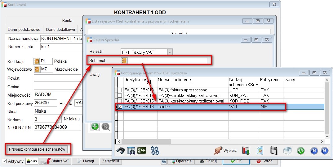 Podobnie będzie w przypadku definicji schematu dla kontrahenta.
