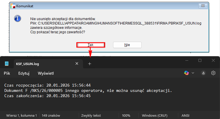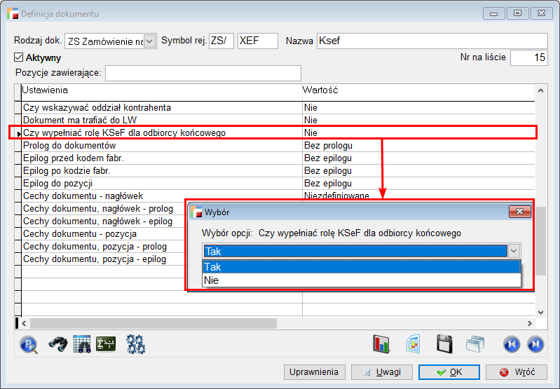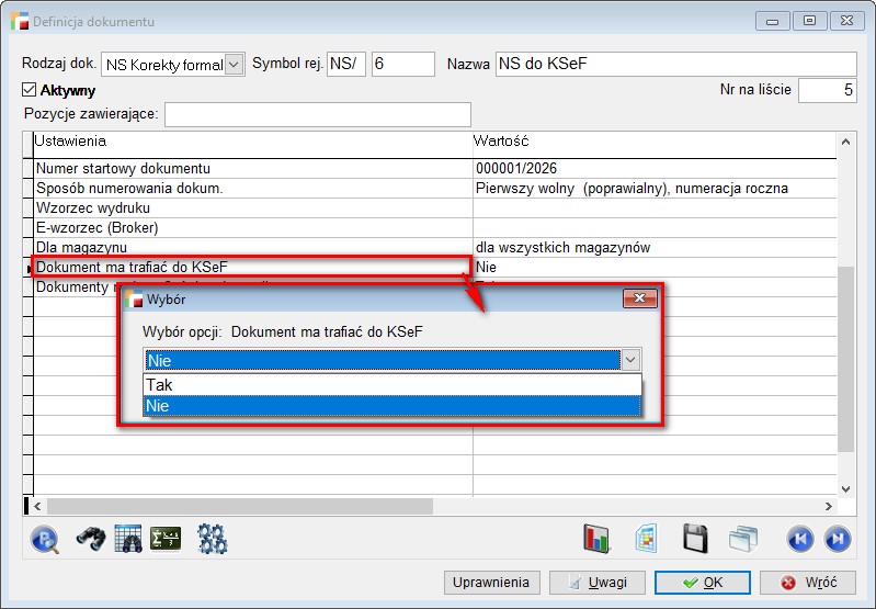 Wybór tej opcji ma konsekwencje w dalszych etapach przetwarzania dokumentów w systemie.