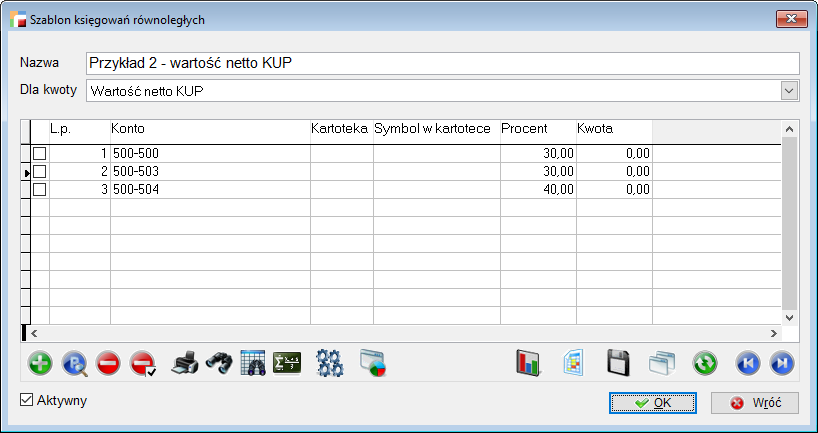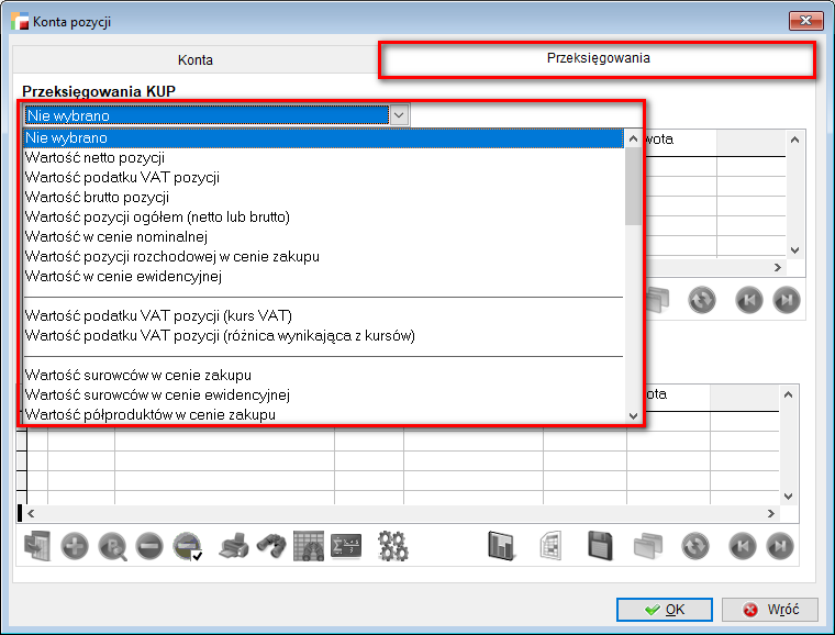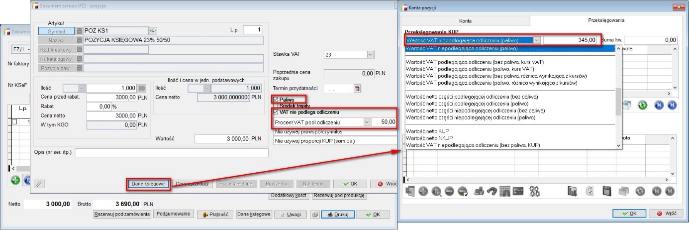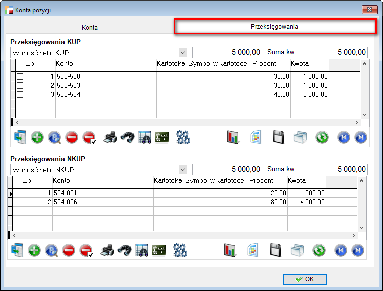 Do każdej pozycji należy zdefiniować sposób rozksięgowania.