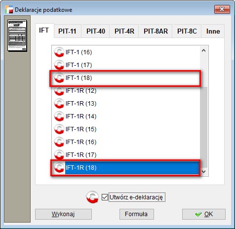 1. Nowy formularz deklaracji IFT-1 i IFT-1R w wersji 18