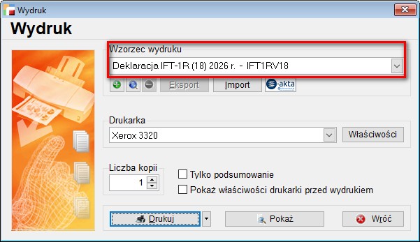 Na potrzeby obsługi ww. deklaracji, dodano nowe wzorce wydruku dla wersji 18.