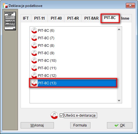 2. Nowy formularz deklaracji PIT-8C w wersji 13
