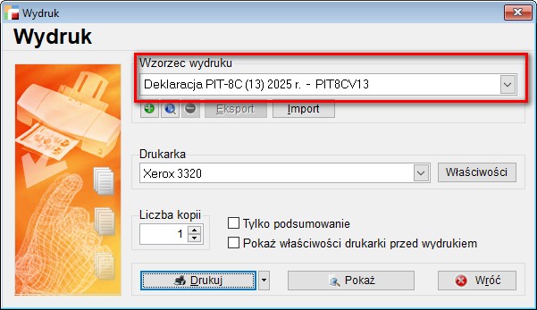 Na potrzeby obsługi ww. deklaracji, dodano nowy wzorzec wydruku dla wersji 13.