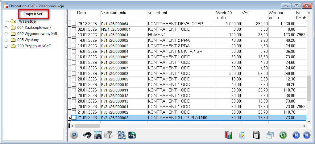 Jeśli firma posiada Moduł KSeF i Konfigurator schematów KSeF dla danej licencji i posiada również bazę testową/ nielicencjonowaną, wówczas nie podepnie ww. modułów do firmy nielicencjonowanej. One będą działać, ale bez możliwości wysyłki na bramkę produkcyjną.