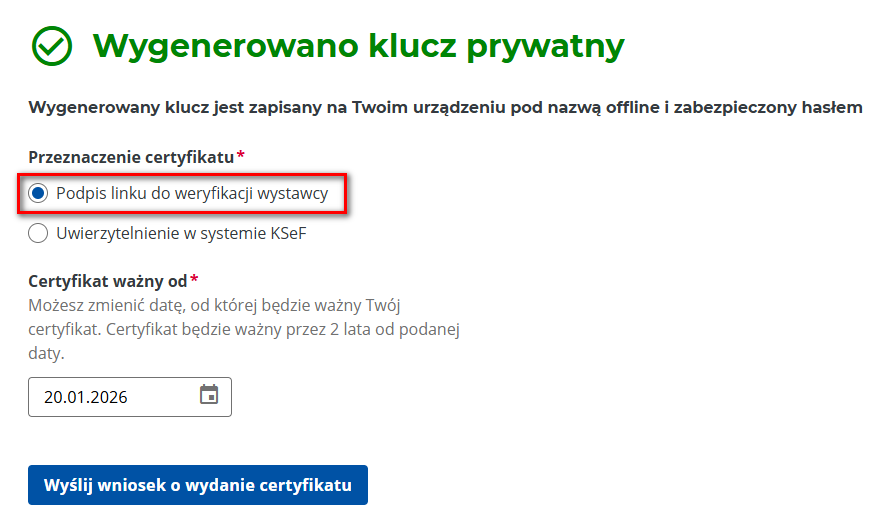 - <Klucz> zawierający nazwę klucza w KSeF, tj. domyślnie Data ważności,