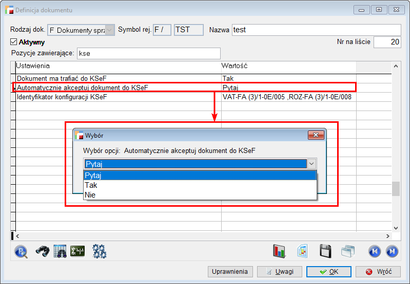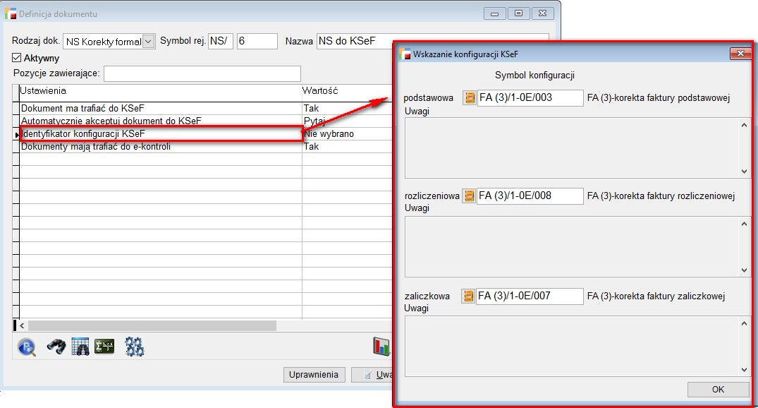 Natomiast w definicji rejestrów trafiających do KSeF, możliwe będzie przypisanie konfiguracji użytkownika.