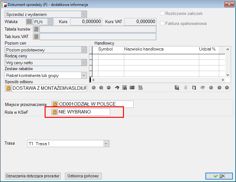 Jeżeli rola zostanie wskazana, to podczas przekształcenia dokumentu zamówień, zostanie ona przeniesiona na fakturę. W efekcie, dane odbiorcy końcowego z dokumentu ZS/ZO zostaną ujęte w sekcji Podmiot 3 na dokumencie sprzedaży.