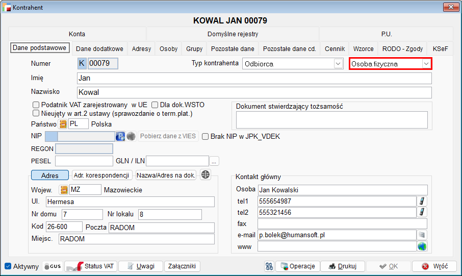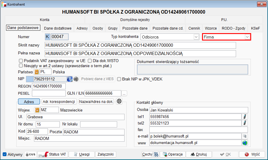 Przykład 7. Nr u kontrahenta jako dodatkowy opis.