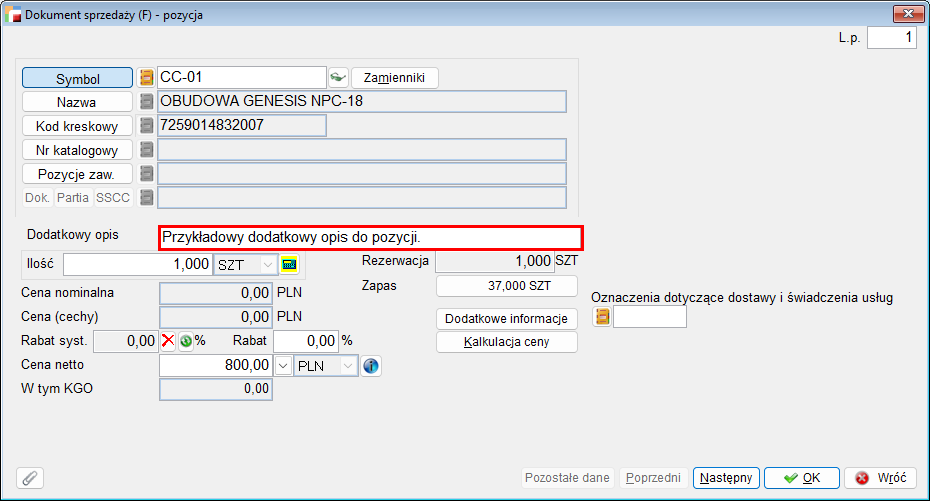 Przykład 5. Opis do pozycji jako dodatkowy opis.