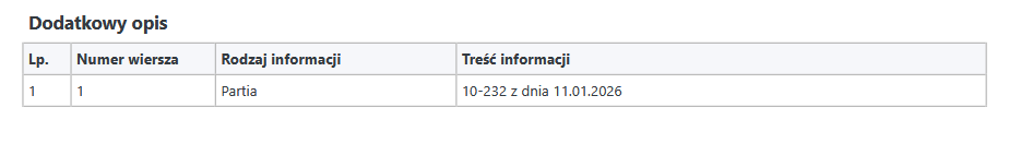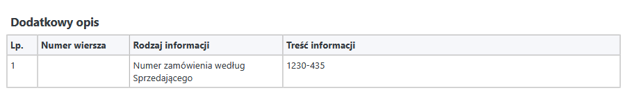 - <NrWiersza> odnoszący się do numeru pozycji, której dotyczy dodatkowy opis,